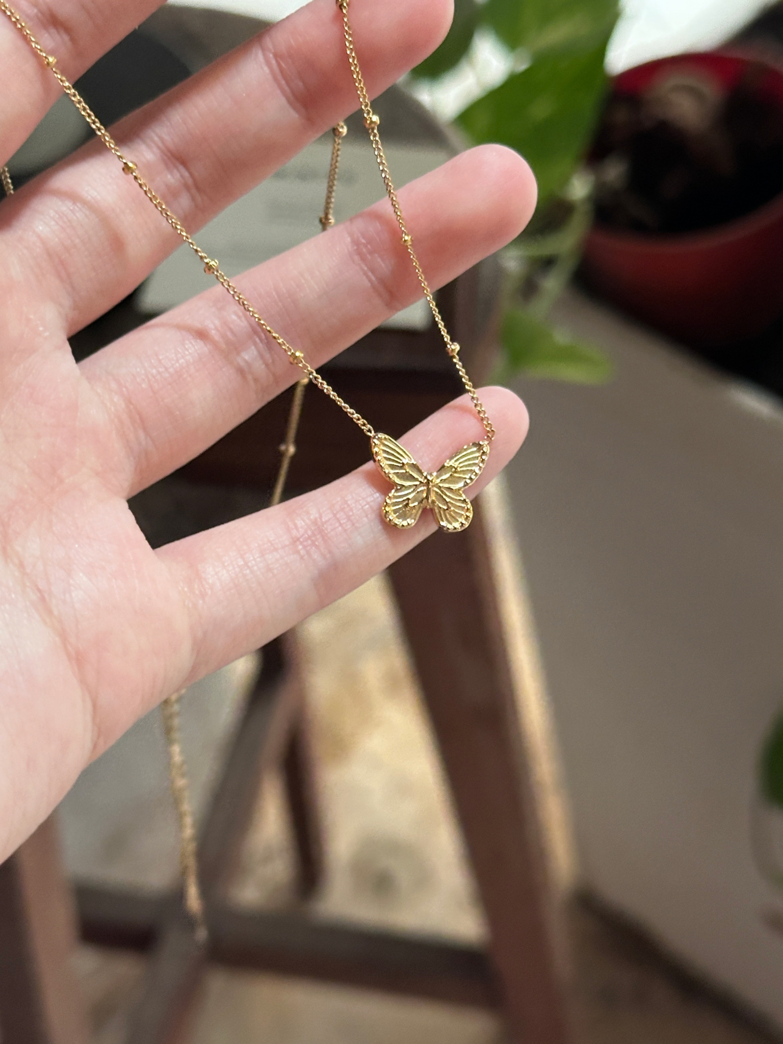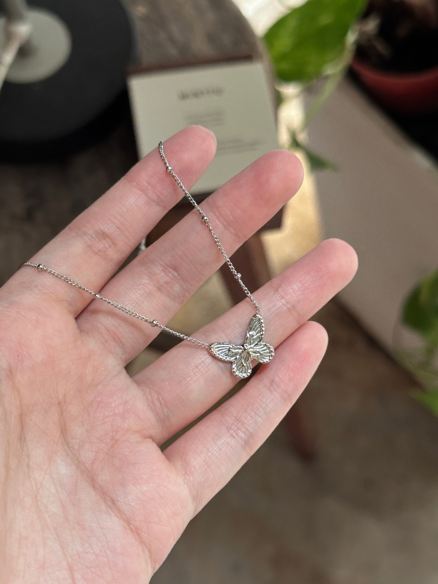 很精致,翅膀是细细的碎闪纹理,在光线下会有很温柔的闪感。