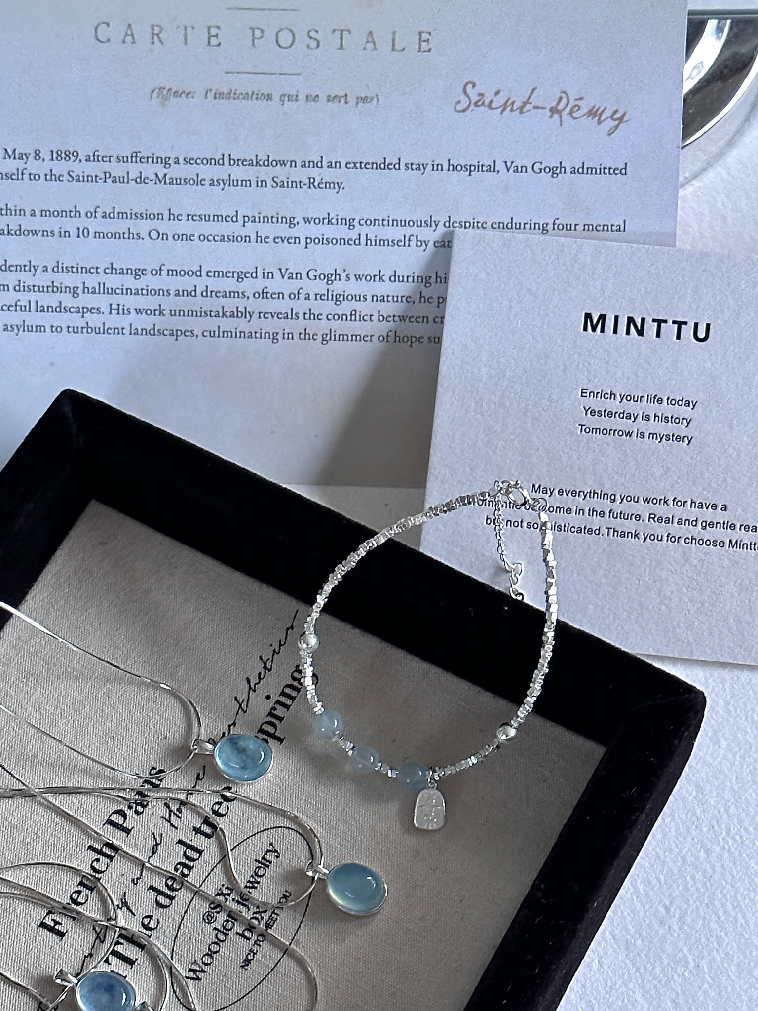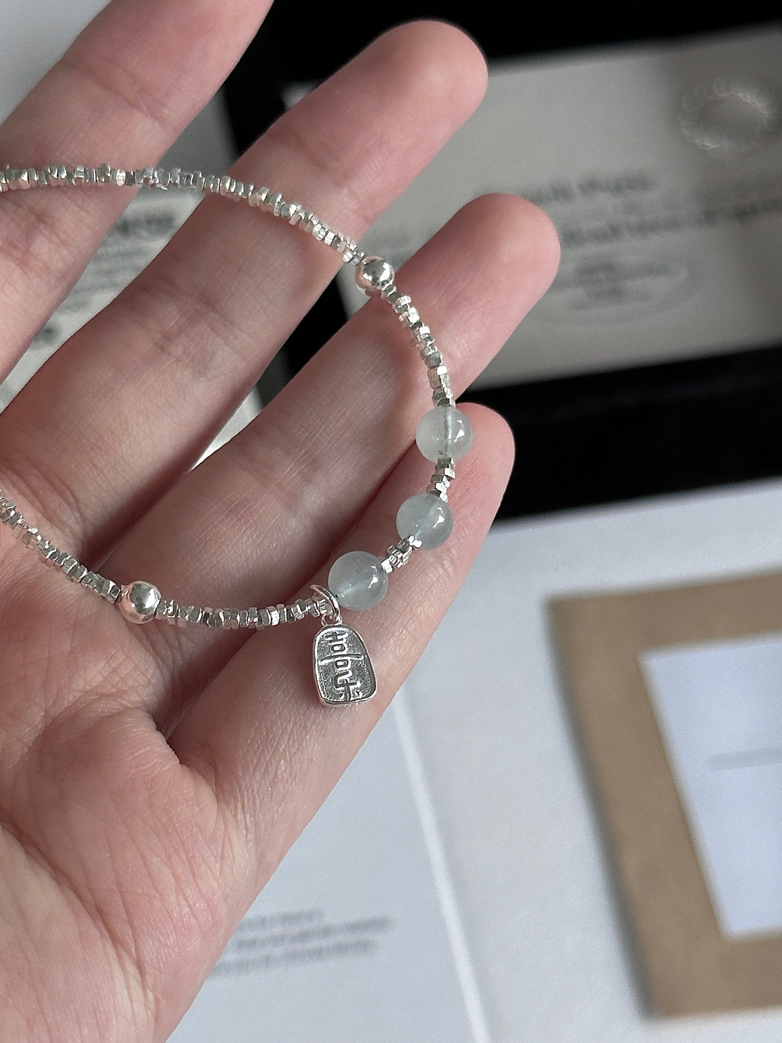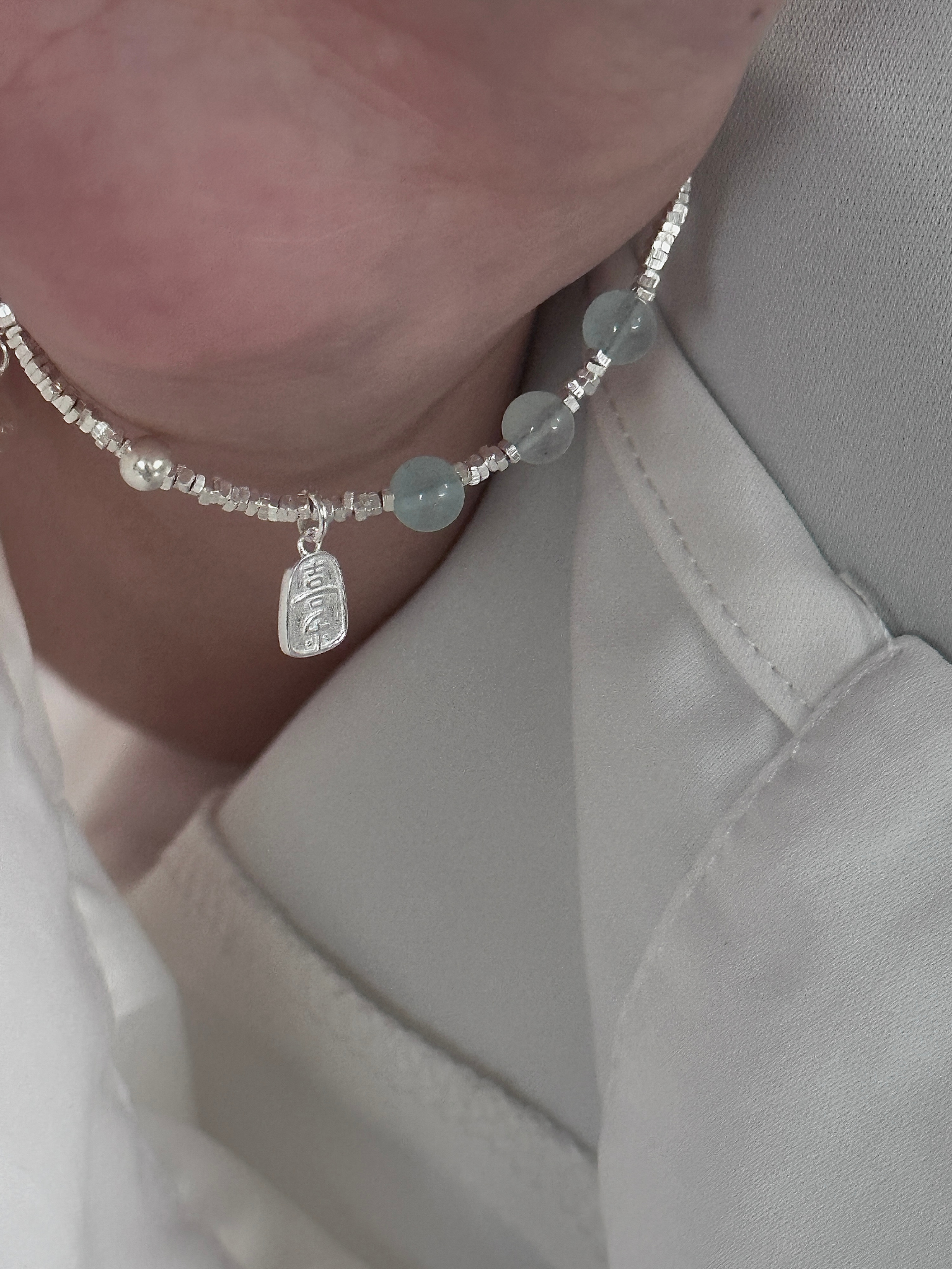 手串通体都是925 银/海蓝宝(水晶)