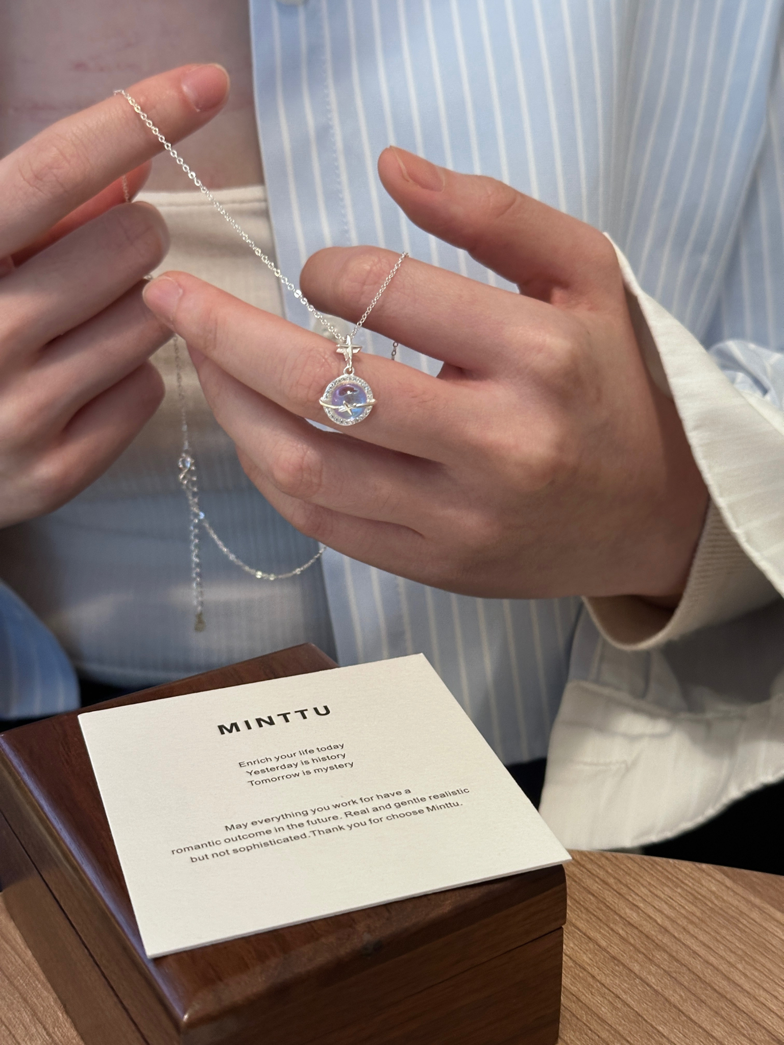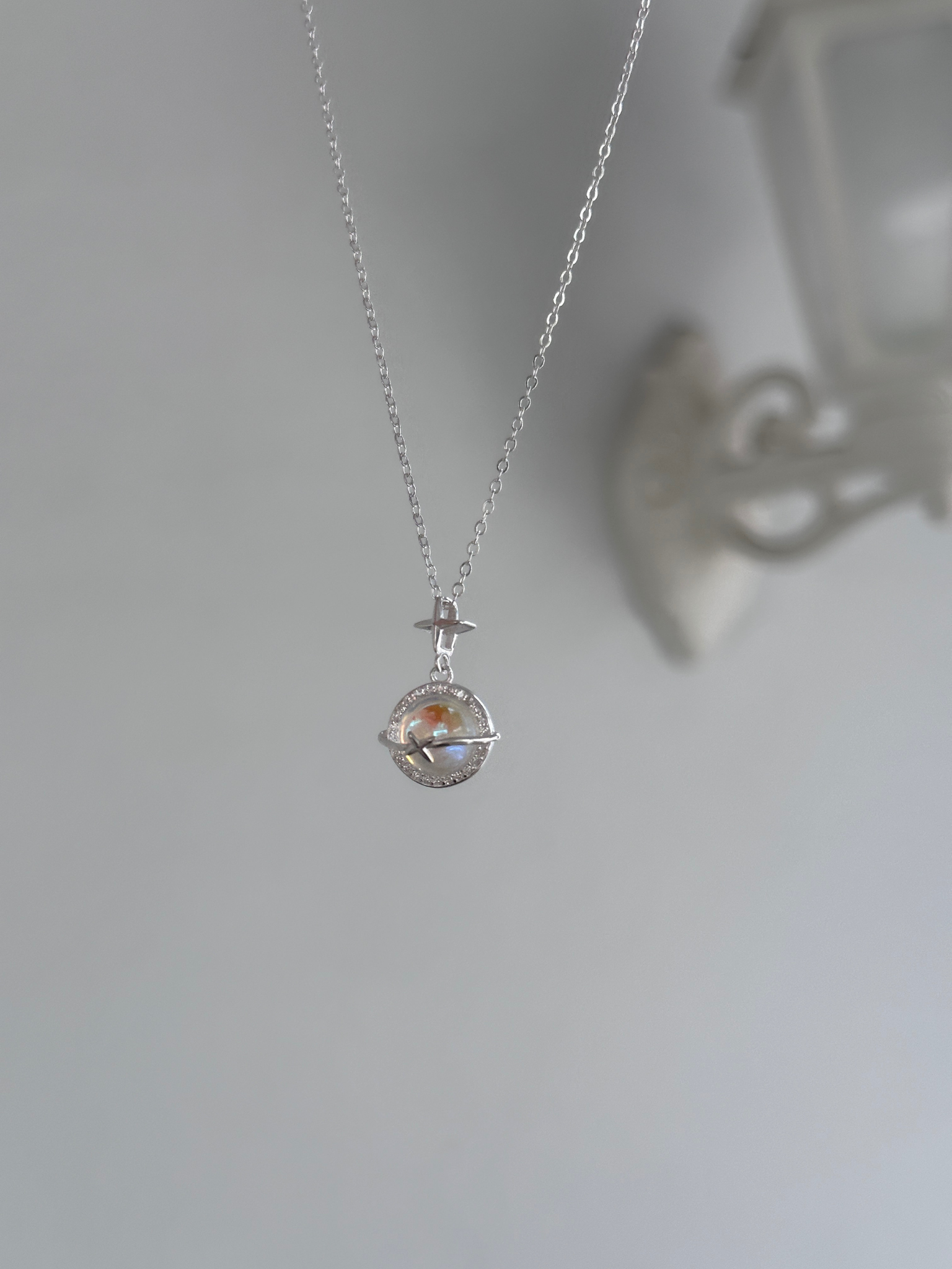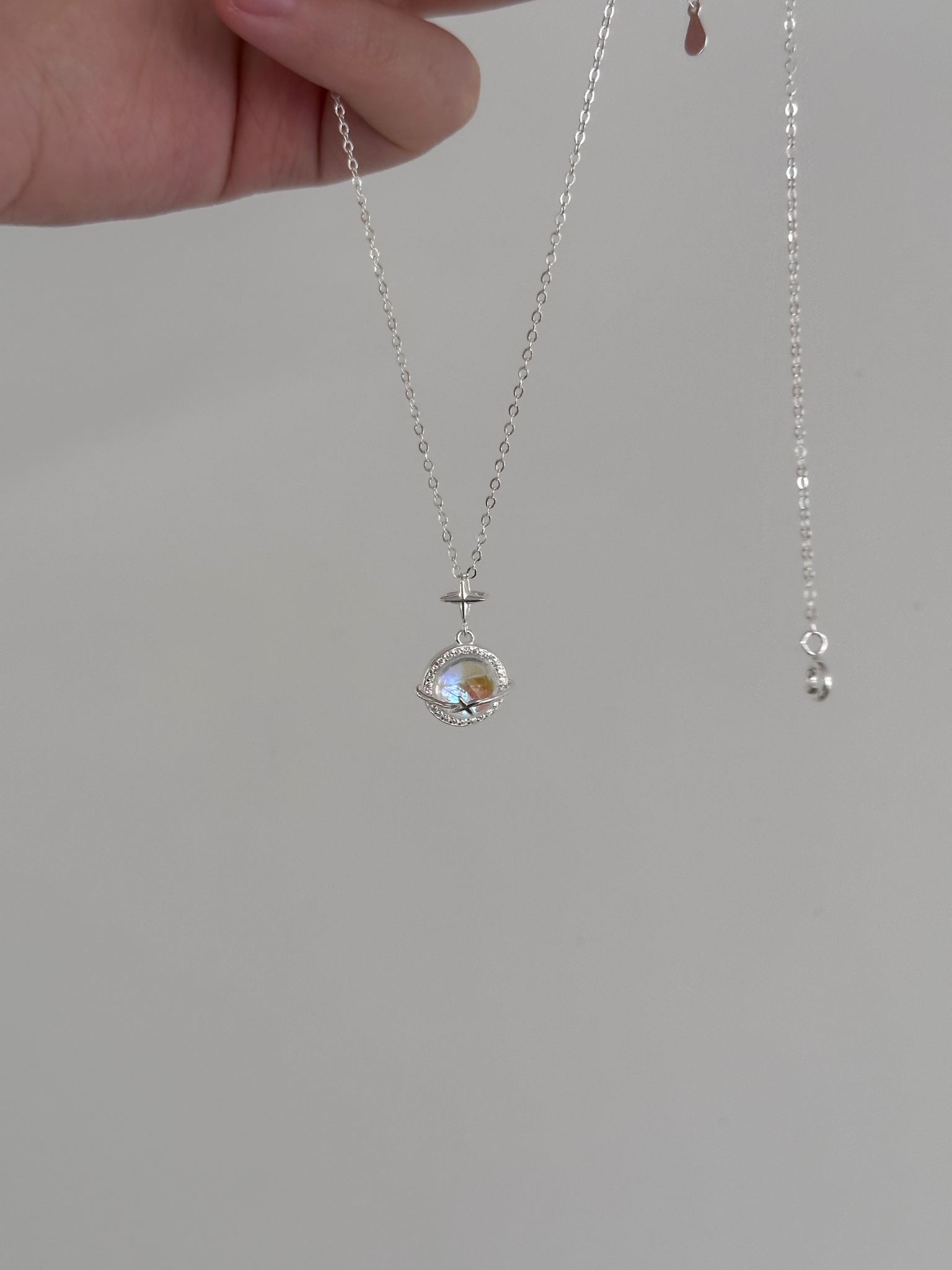 这款【宇宙中的梦幻星球】🪐项链,将幻彩石的灵动光泽与纯银的清冷质感结合,就像把整个银河挂在了锁骨上🌌