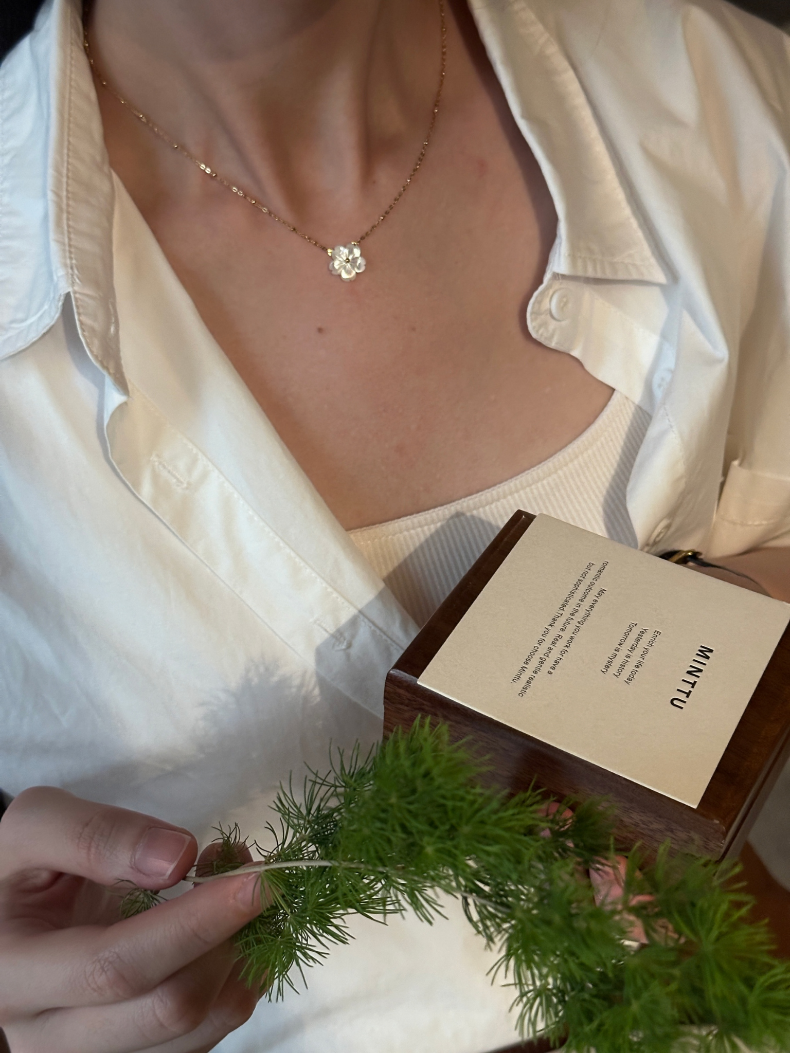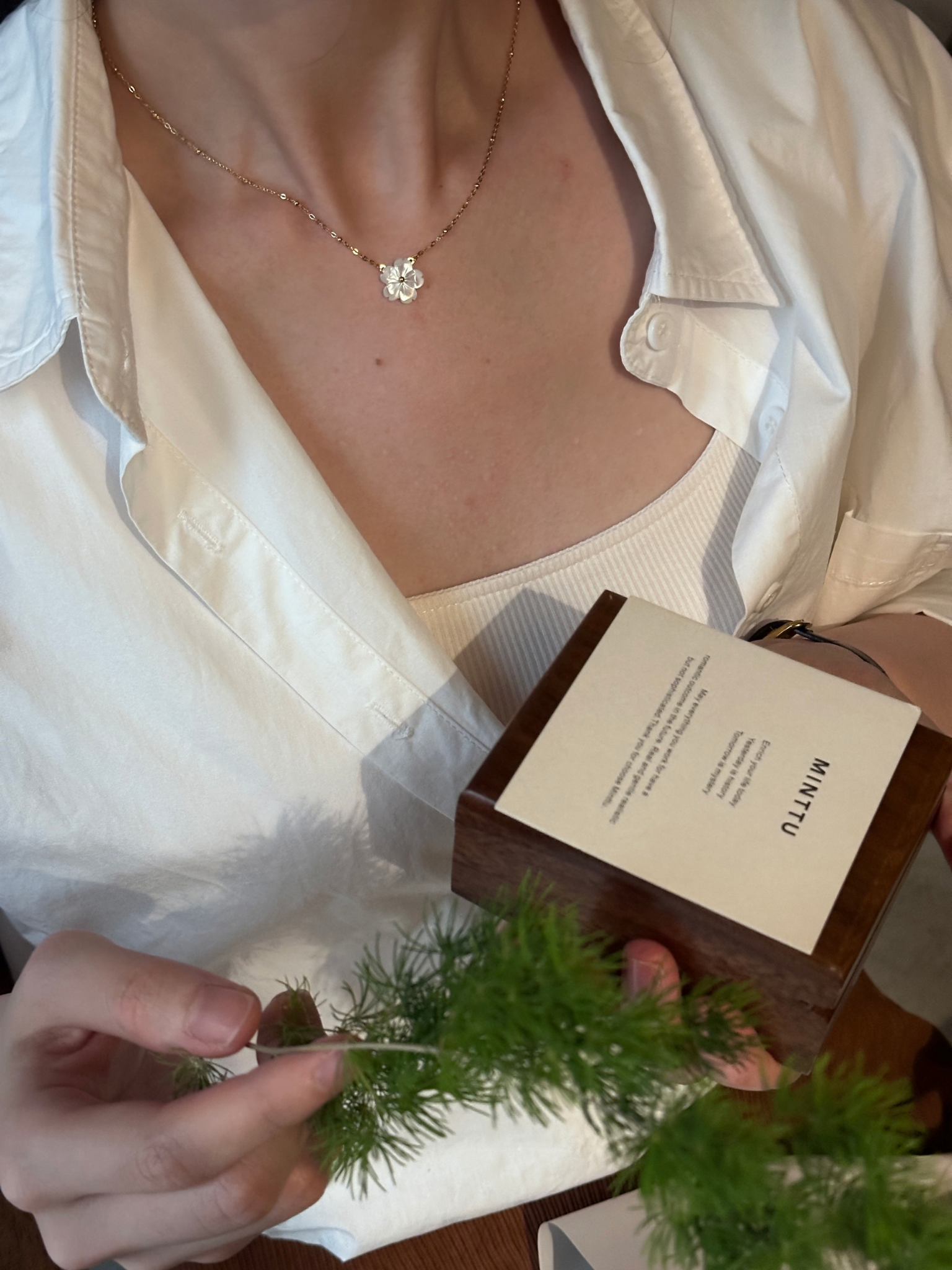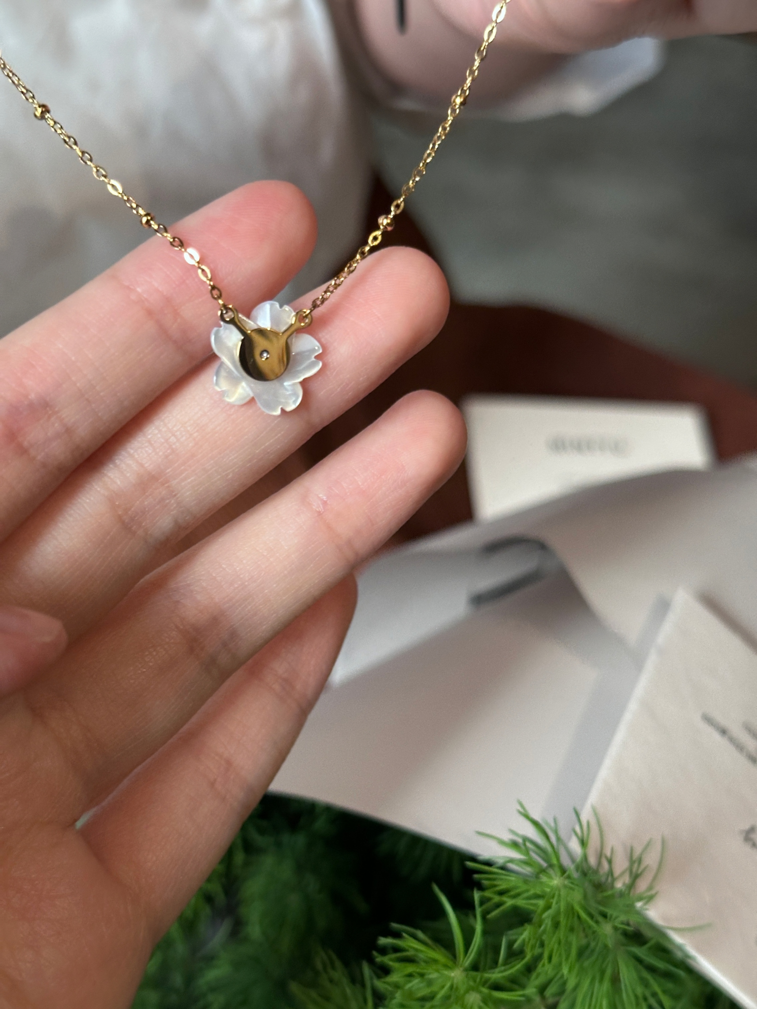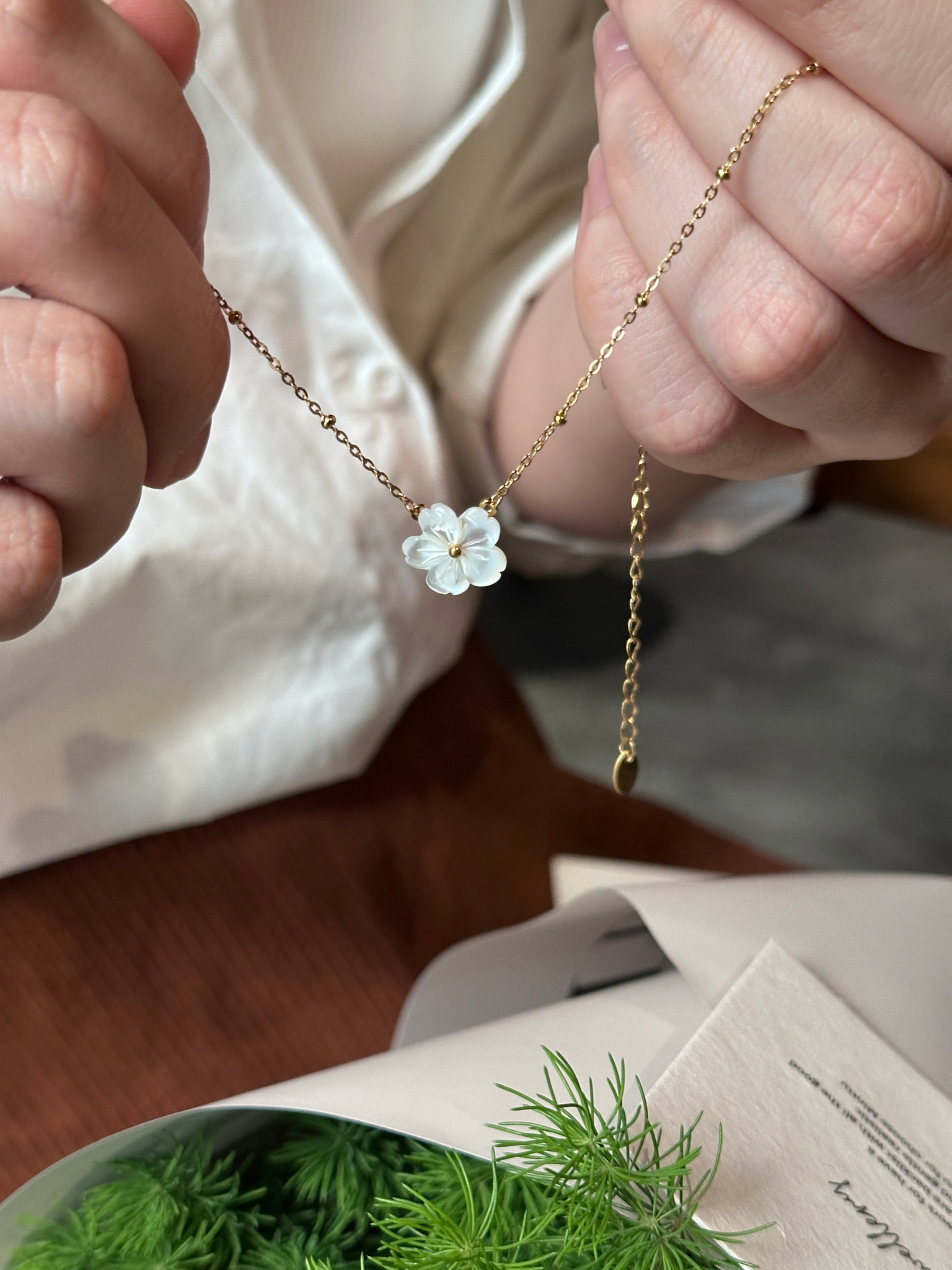 戴在锁骨的位置就像一朵刚刚盛开的小桃花。