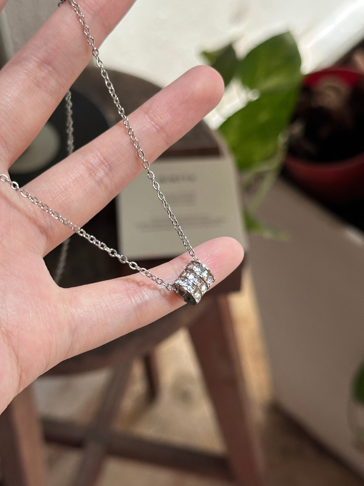 项链通体都是钛钢/锆石所以不用担心会生锈变色噢✨钛钢材质,耐用又安心。日常碰香水、乳液,洗澡、运动、游泳都能直接佩戴!
