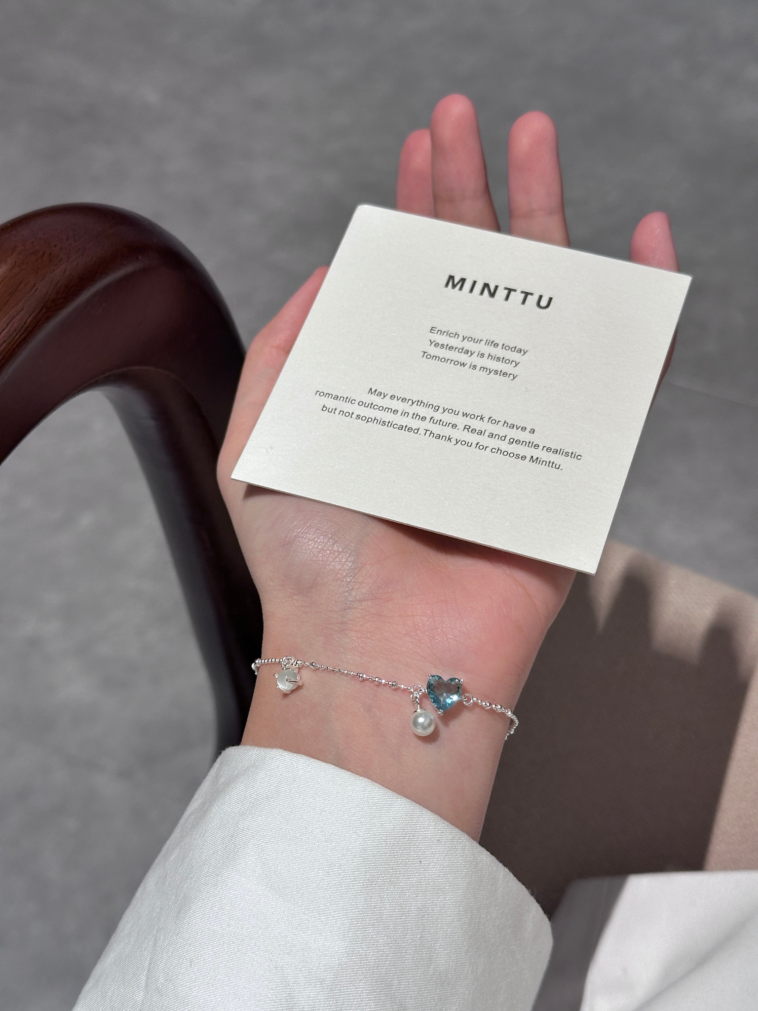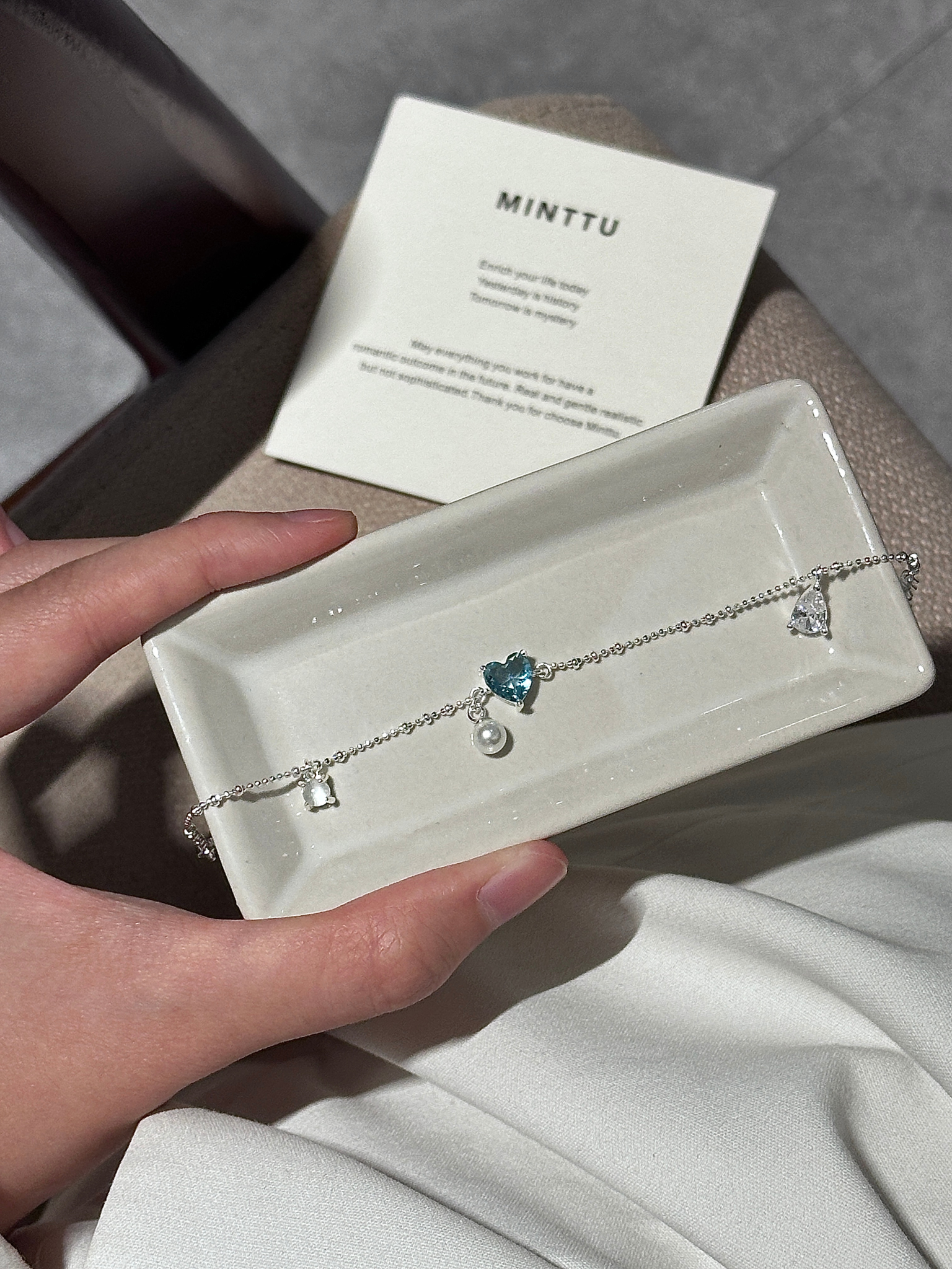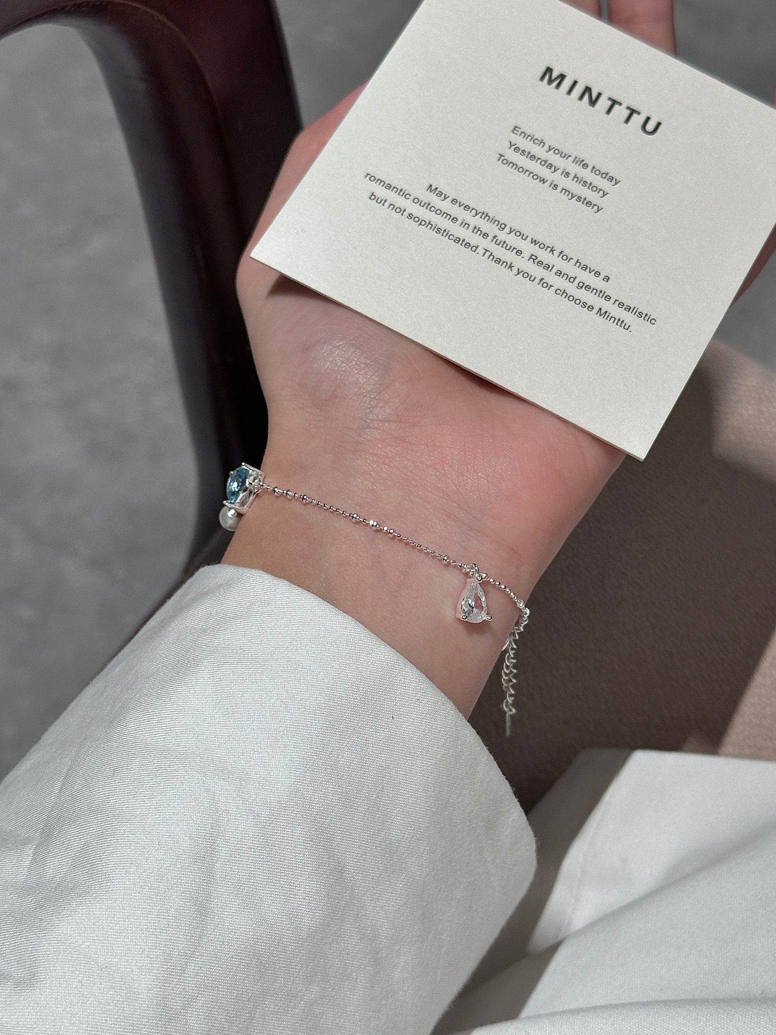 手链通体都是925 银/蓝锆石/白玛瑙/水晶珍珠所以不用担心会过敏噢✨