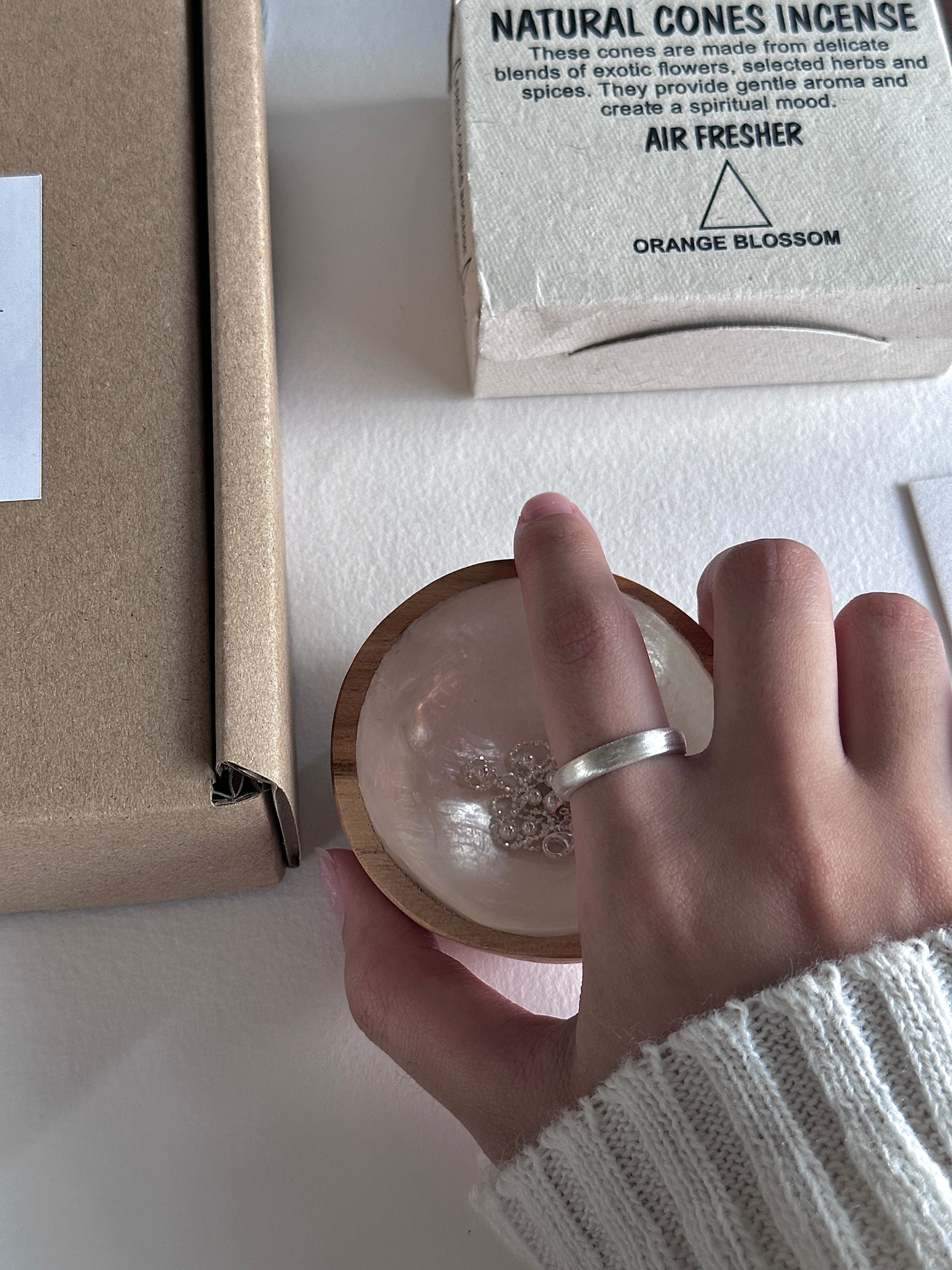 -戒指通体都是925 银所以不用担心会变色或者过敏噢✨ -这款有采用纯银拉丝的工艺所以整体看起来就是有那种及简约但是又是带点小设计的款式。