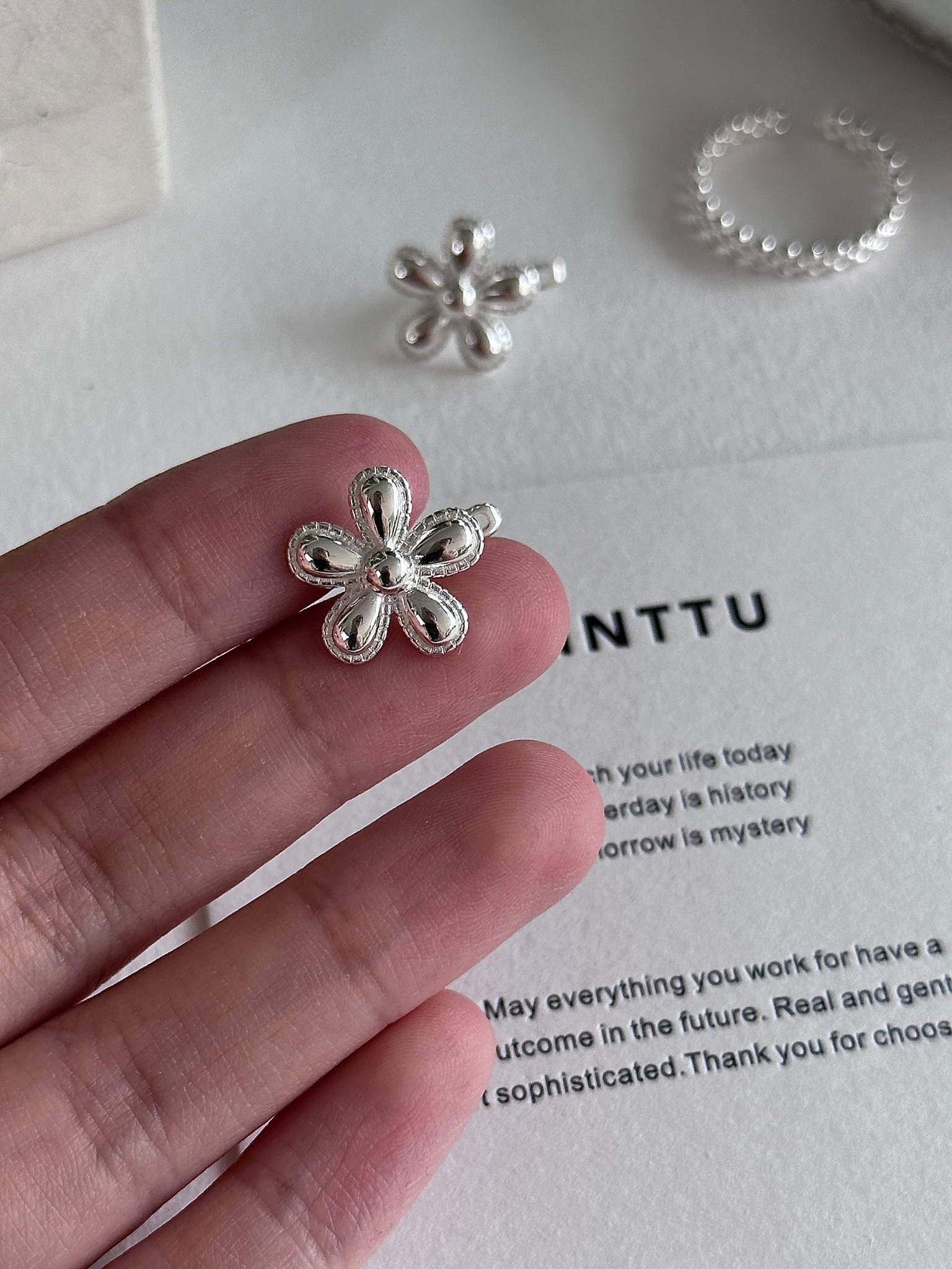 耳环通体都是925 银所以不用担心会变色或者过敏噢✨