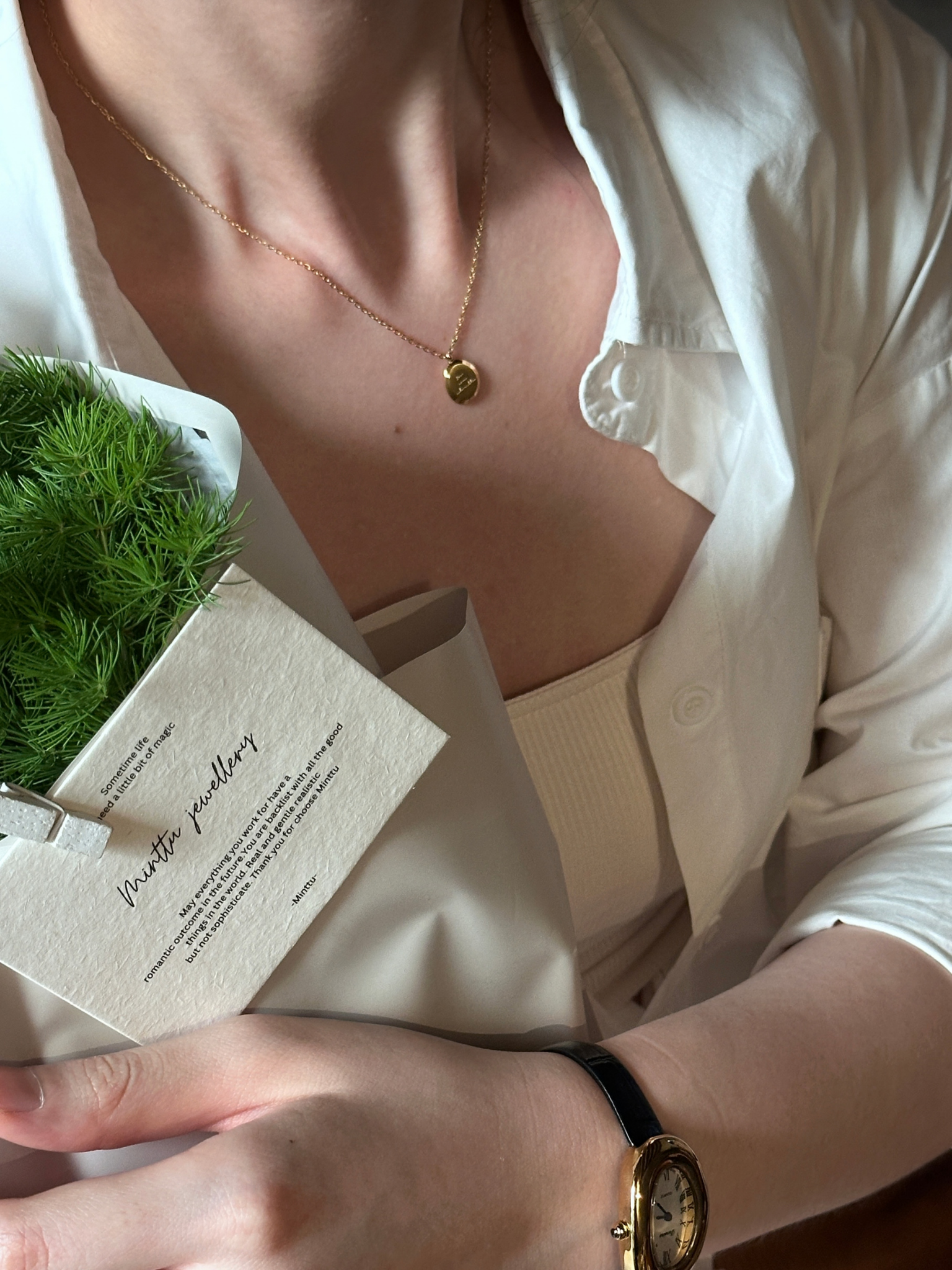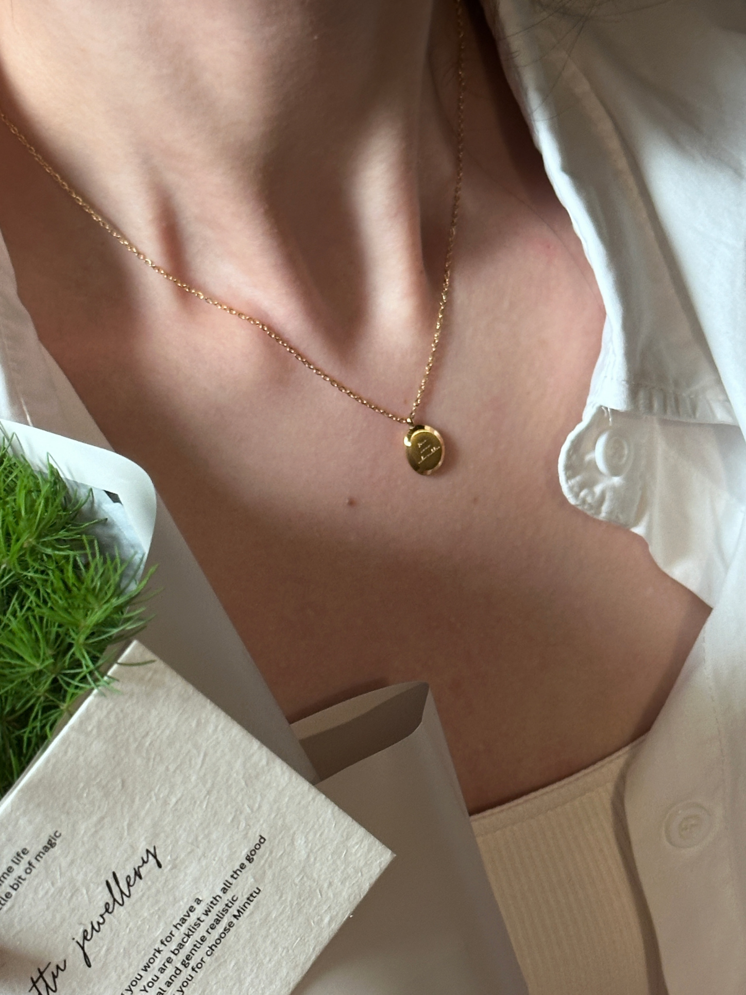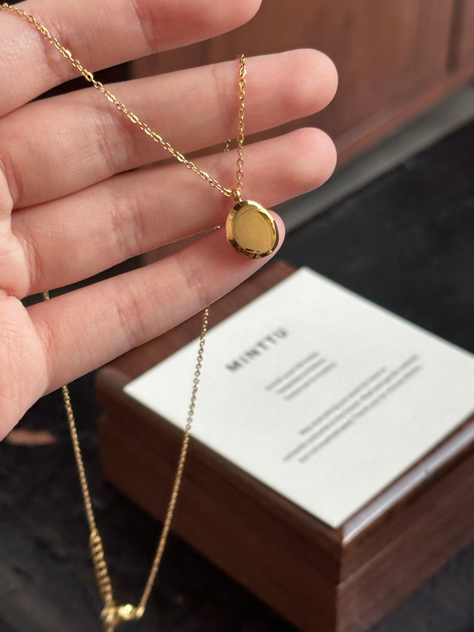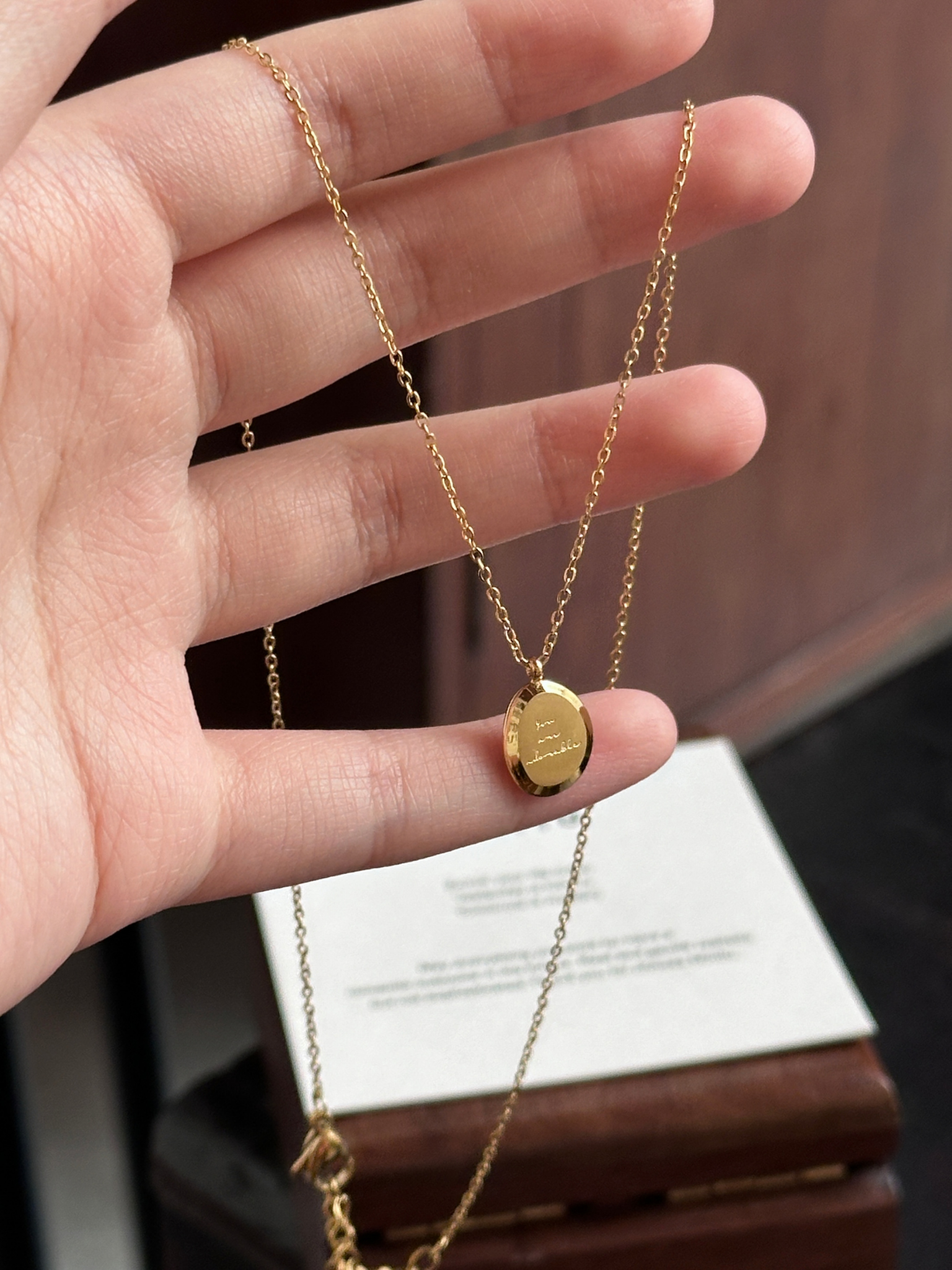 项链的背面还可以刻名字或字母。变成一条属于自己的小项链。是一条很日常、很耐看的法式锁骨链。简单的一枚小圆牌,却藏着一句很温柔的话。 ✨